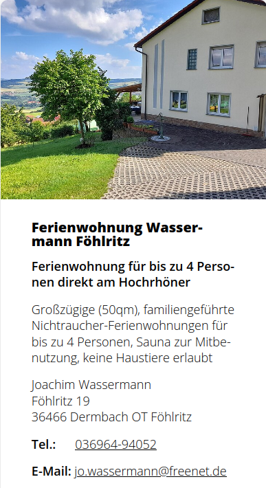 Durch die zentrale Lage in der Vorderrhön ist Dermbach bester Ausgangspunkt für viele Wanderungen und liegt auf 370m über NN. Knapp 3.000 Einwohner sind hier beheimatet.